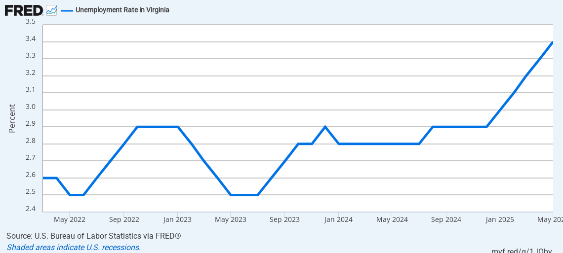 Virginia’s unemployment rate is continuing to slowly climb