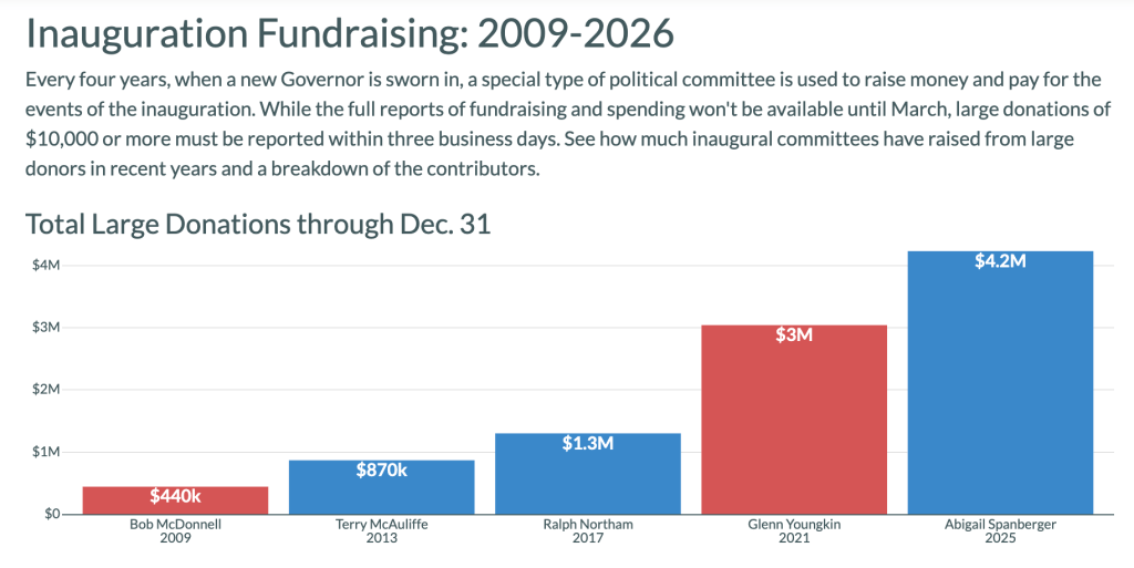 - Fundraising for Virginia inaugurations keeps ticking upward